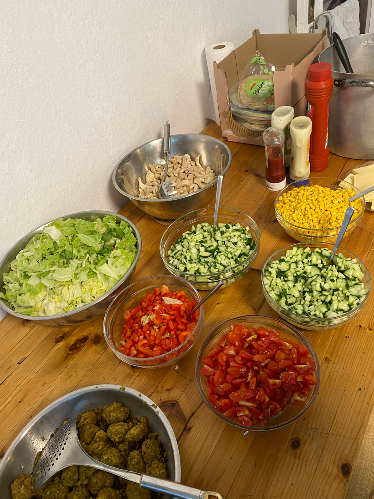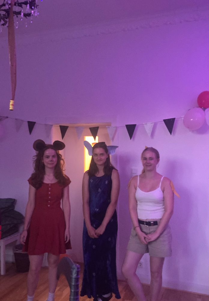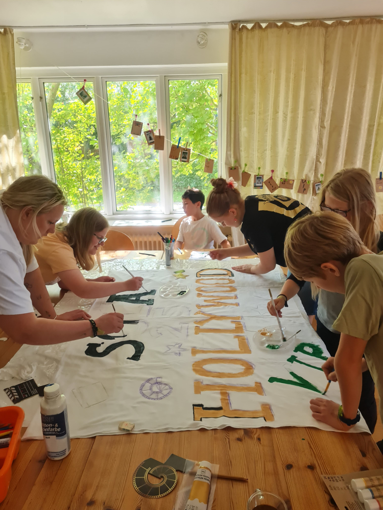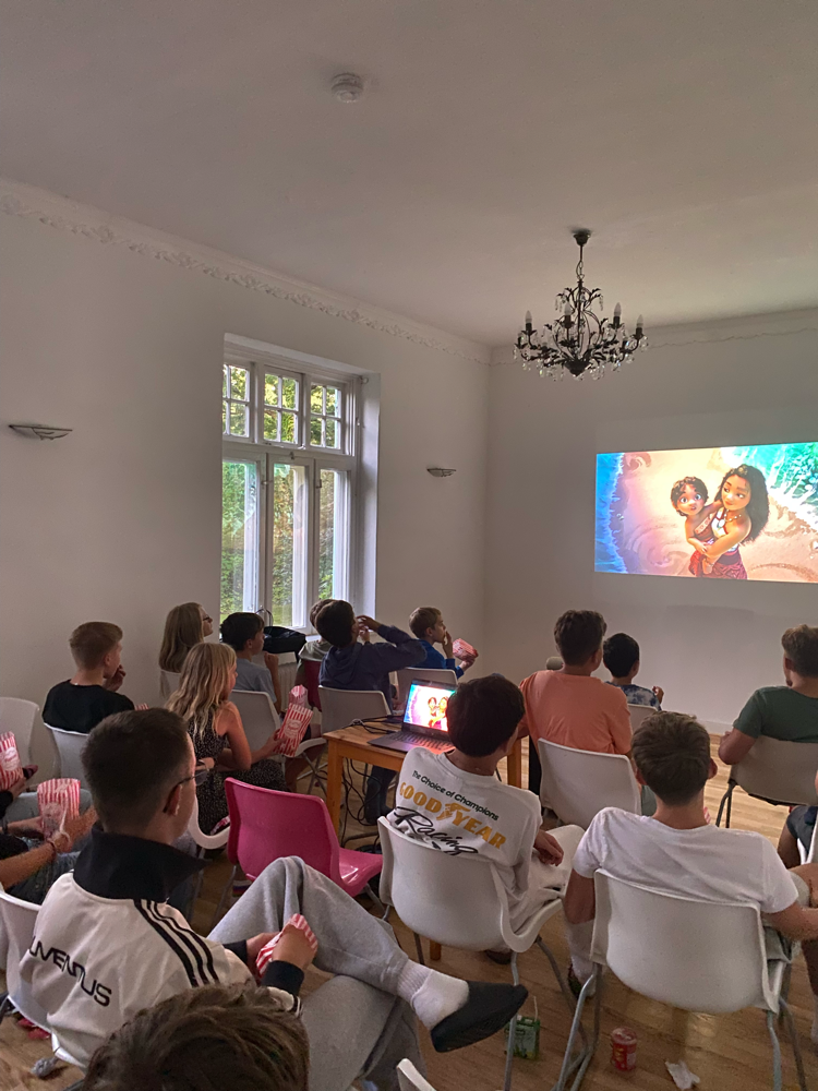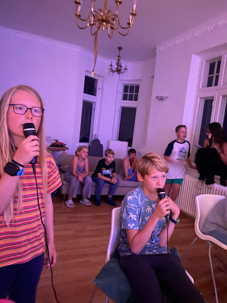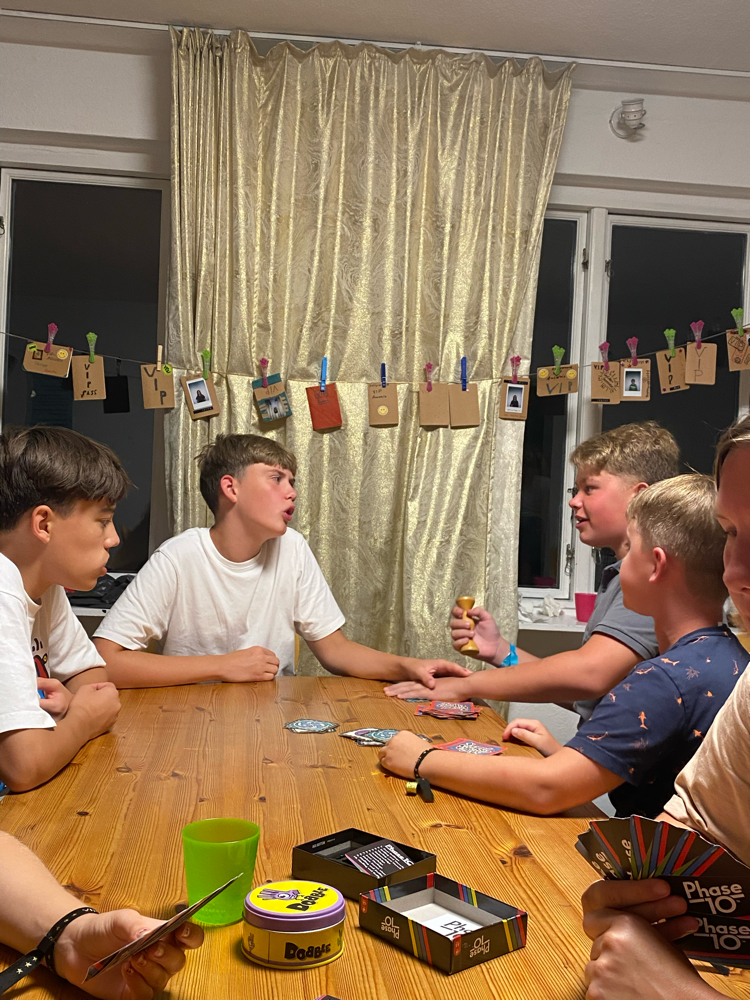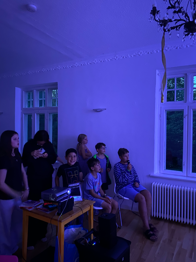 Nachdem wir wieder im Haus angekommen sind, uns geduscht und zu Abend gegessen haben, standen uns mehrere Programmpunkte am freien Abend zur Verfügung: Wir konnten Gesellschaftsspiele spielen, Beutel bemalen oder auch unser gesangliches Können gegeneinander beim Karaoke testen. Die Älteren lassen gerade den Abend ausklingen und warten auf Mitternacht, um in Deborahs Geburtstag reinzufeiern.