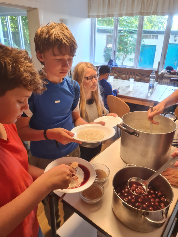 Der Tischdienst hat alles so vorbereitet, dass wir uns um 8:45 Uhr mit Brot, Aufstrichen, Käse und Wurst, Saft, Kakao und Wasser stärken konnten.