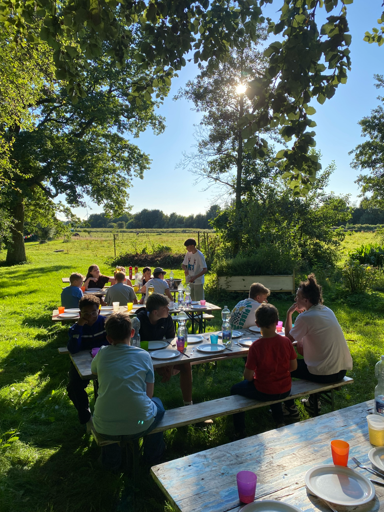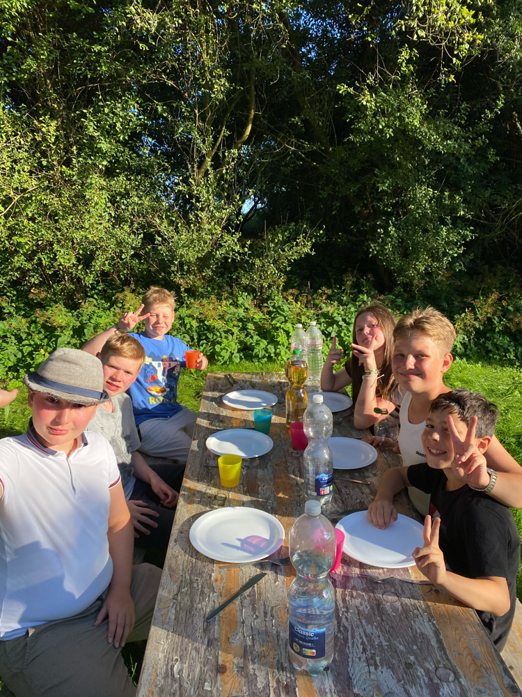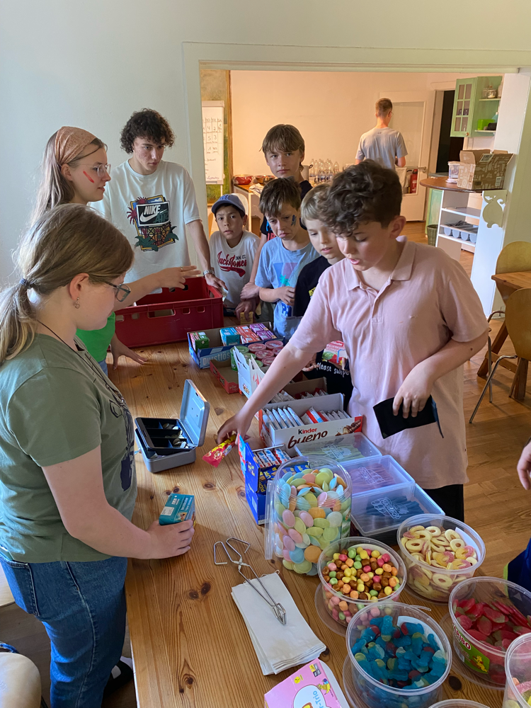 Heute ging es vor dem Frühstück eine Runde aufwärmen. Nach dem Frühstück wurde dann bei Workshops gebacken und gebastelt. Ob Lagerfahne, Fußketten oder Flugzeuge, die Churros haben allen geschmeckt. Nach der Mittagsstärkung mit Hähnchengeschnetzeltem und Reis, gab es dann einen großen Ansturm auf den Lagerkiosk. Am Nachmittag wurde sich bei Volleyball, Basketball und Fußball ausgepowert und anschließend mit einer Wasserschlacht abgekühlt. Den Abend ließen wir musikalisch und mit leckerem Stockbrot am Lagerfeuer ausklingen.